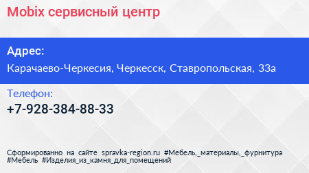 Mobix, сервисный центр по адресу Карачаево-Черкесия, Черкесск, Ставропольская, 33а в дальнейшем Организация, размещена в следующих категориях: