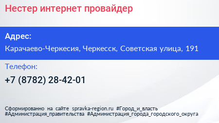 Нестер, интернет-провайдер по адресу Карачаево-Черкесия, Черкесск, Советская улица, 191 в дальнейшем Организация, размещена в следующих категориях: