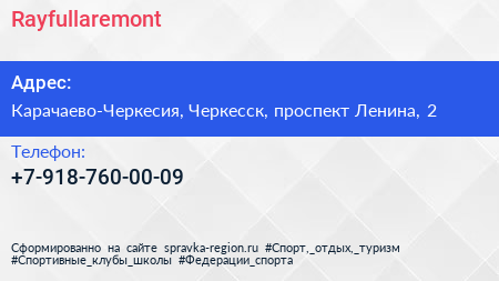 Rayfullaremont по адресу Карачаево-Черкесия, Черкесск, проспект Ленина, 2 в дальнейшем Организация, размещена в следующих категориях: