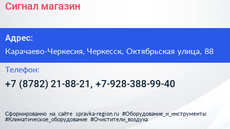 Сигнал, магазин по адресу Карачаево-Черкесия, Черкесск, Октябрьская улица, 88 в дальнейшем Организация, размещена в следующих категориях: