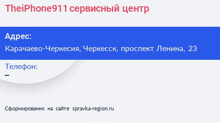 TheiPhone911, сервисный центр по адресу Карачаево-Черкесия, Черкесск, проспект Ленина, 23 в дальнейшем Организация, размещена в следующих категориях: