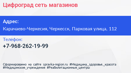 Цифроград, сеть магазинов по адресу Карачаево-Черкесия, Черкесск, Парковая улица, 112 в дальнейшем Организация, размещена в следующих категориях: