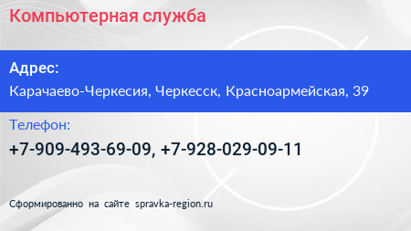 Компьютерная служба по адресу Карачаево-Черкесия, Черкесск, Красноармейская, 39 в дальнейшем Организация, размещена в следующих категориях: