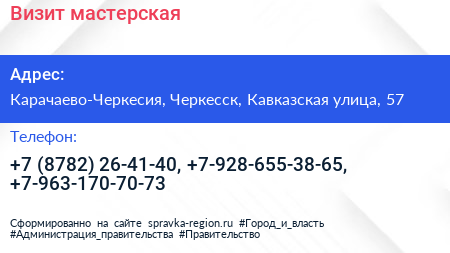 Визит, мастерская по адресу Карачаево-Черкесия, Черкесск, Кавказская улица, 57 в дальнейшем Организация, размещена в следующих категориях: