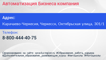 Автоматизация Бизнеса, компания по адресу Карачаево-Черкесия, Черкесск, Октябрьская улица, 301/1 в дальнейшем Организация, размещена в следующих категориях: