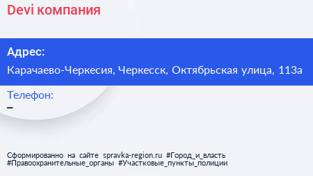 Devi, компания по адресу Карачаево-Черкесия, Черкесск, Октябрьская улица, 113а в дальнейшем Организация, размещена в следующих категориях:
