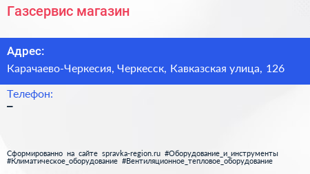 Газсервис, магазин по адресу Карачаево-Черкесия, Черкесск, Кавказская улица, 126 в дальнейшем Организация, размещена в следующих категориях: