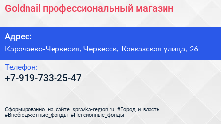 Goldnail, профессиональный магазин по адресу Карачаево-Черкесия, Черкесск, Кавказская улица, 26 в дальнейшем Организация, размещена в следующих категориях: