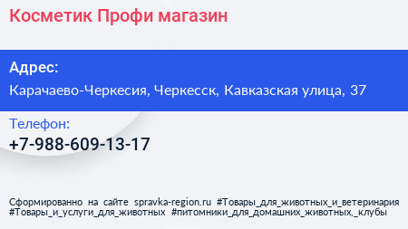 Косметик Профи, магазин по адресу Карачаево-Черкесия, Черкесск, Кавказская улица, 37 в дальнейшем Организация, размещена в следующих категориях:
