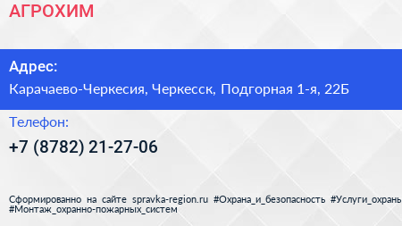 АГРОХИМ по адресу Карачаево-Черкесия, Черкесск, Подгорная 1-я, 22Б в дальнейшем Организация, размещена в следующих категориях: