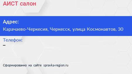 АИСТ, салон по адресу Карачаево-Черкесия, Черкесск, улица Космонавтов, 30 в дальнейшем Организация, размещена в следующих категориях: