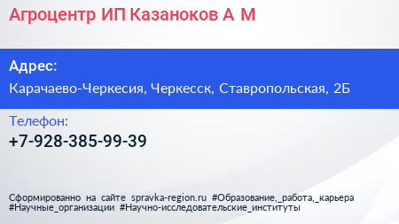Агроцентр, ИП Казаноков А.М. по адресу Карачаево-Черкесия, Черкесск, Ставропольская, 2Б в дальнейшем Организация, размещена в следующих категориях: