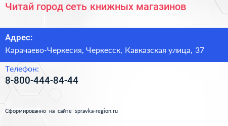 Читай-город, сеть книжных магазинов по адресу Карачаево-Черкесия, Черкесск, Кавказская улица, 37 в дальнейшем Организация, размещена в следующих категориях: