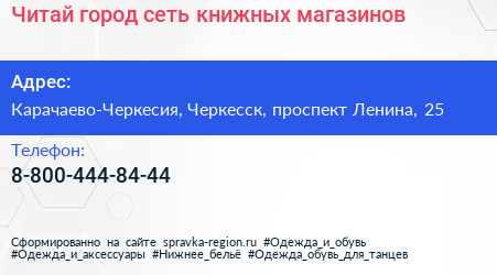 Читай-город, сеть книжных магазинов по адресу Карачаево-Черкесия, Черкесск, проспект Ленина, 25 в дальнейшем Организация, размещена в следующих категориях: