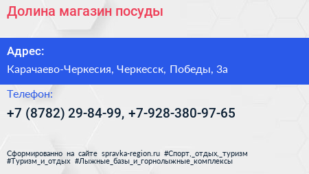 Долина, магазин посуды по адресу Карачаево-Черкесия, Черкесск, Победы, 3а в дальнейшем Организация, размещена в следующих категориях: