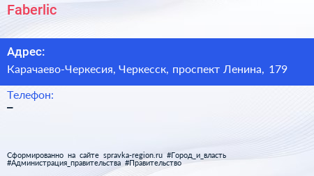 Faberlic по адресу Карачаево-Черкесия, Черкесск, проспект Ленина, 179 в дальнейшем Организация, размещена в следующих категориях: