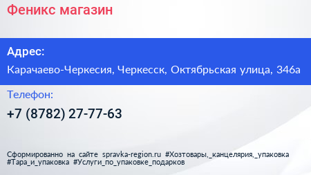Феникс, магазин по адресу Карачаево-Черкесия, Черкесск, Октябрьская улица, 346а в дальнейшем Организация, размещена в следующих категориях: