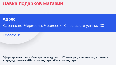 Лавка подарков, магазин по адресу Карачаево-Черкесия, Черкесск, Кавказская улица, 30 в дальнейшем Организация, размещена в следующих категориях: