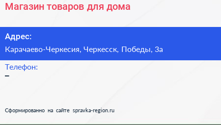 Магазин товаров для дома по адресу Карачаево-Черкесия, Черкесск, Победы, 3а в дальнейшем Организация, размещена в следующих категориях: