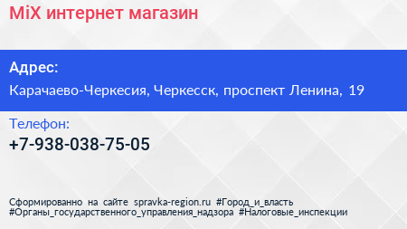 MiX, интернет-магазин по адресу Карачаево-Черкесия, Черкесск, проспект Ленина, 19 в дальнейшем Организация, размещена в следующих категориях: