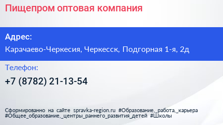 Пищепром, оптовая компания по адресу Карачаево-Черкесия, Черкесск, Подгорная 1-я, 2д в дальнейшем Организация, размещена в следующих категориях: