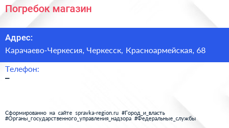 Погребок, магазин по адресу Карачаево-Черкесия, Черкесск, Красноармейская, 68 в дальнейшем Организация, размещена в следующих категориях: