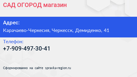 САД-ОГОРОД, магазин по адресу Карачаево-Черкесия, Черкесск, Демиденко, 41 в дальнейшем Организация, размещена в следующих категориях: