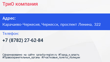 ТриО, компания по адресу Карачаево-Черкесия, Черкесск, проспект Ленина, 322 в дальнейшем Организация, размещена в следующих категориях: