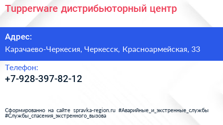 Tupperware, дистрибьюторный центр по адресу Карачаево-Черкесия, Черкесск, Красноармейская, 33 в дальнейшем Организация, размещена в следующих категориях:
