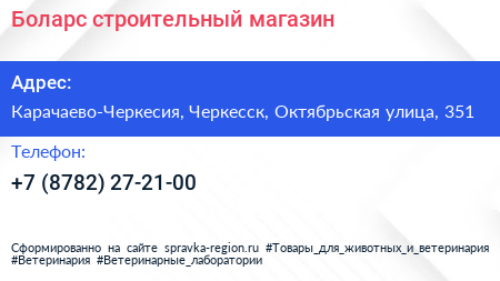 Боларс, строительный магазин по адресу Карачаево-Черкесия, Черкесск, Октябрьская улица, 351 в дальнейшем Организация, размещена в следующих категориях: