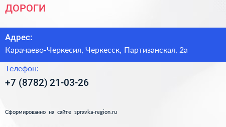 ДОРОГИ по адресу Карачаево-Черкесия, Черкесск, Партизанская, 2а в дальнейшем Организация, размещена в следующих категориях: