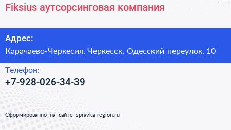 Fiksius, аутсорсинговая компания по адресу Карачаево-Черкесия, Черкесск, Одесский переулок, 10 в дальнейшем Организация, размещена в следующих категориях:
