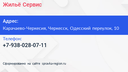 Жильё-Сервис по адресу Карачаево-Черкесия, Черкесск, Одесский переулок, 10 в дальнейшем Организация, размещена в следующих категориях: