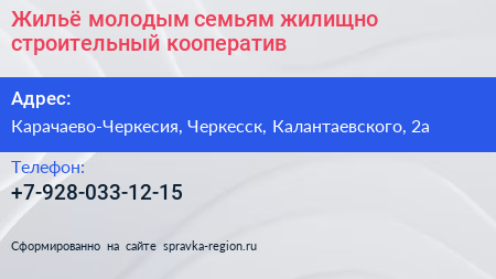 Жильё молодым семьям, жилищно-строительный кооператив по адресу Карачаево-Черкесия, Черкесск, Калантаевского, 2а в дальнейшем Организация, размещена в следующих категориях: