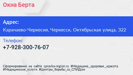 Окна Берта по адресу Карачаево-Черкесия, Черкесск, Октябрьская улица, 322 в дальнейшем Организация, размещена в следующих категориях: