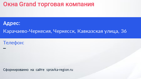 Окна Grand, торговая компания по адресу Карачаево-Черкесия, Черкесск, Кавказская улица, 36 в дальнейшем Организация, размещена в следующих категориях: