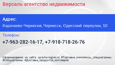Версаль, агентство недвижимости по адресу Карачаево-Черкесия, Черкесск, Одесский переулок, 10 в дальнейшем Организация, размещена в следующих категориях:
