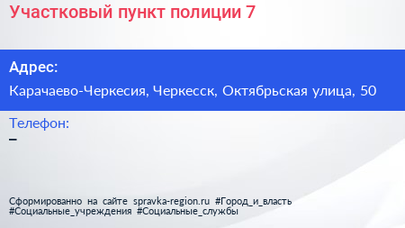 Участковый пункт полиции №7 по адресу Карачаево-Черкесия, Черкесск, Октябрьская улица, 50 в дальнейшем Организация, размещена в следующих категориях: