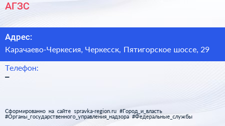 АГЗС по адресу Карачаево-Черкесия, Черкесск, Пятигорское шоссе, 29 в дальнейшем Организация, размещена в следующих категориях: