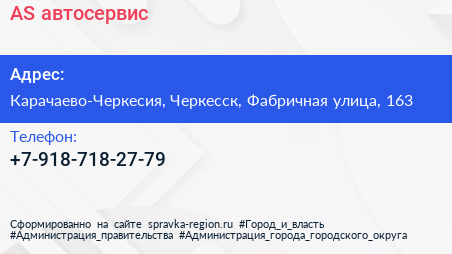 AS, автосервис по адресу Карачаево-Черкесия, Черкесск, Фабричная улица, 163 в дальнейшем Организация, размещена в следующих категориях: