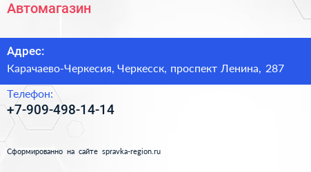 Автомагазин по адресу Карачаево-Черкесия, Черкесск, проспект Ленина, 287 в дальнейшем Организация, размещена в следующих категориях: