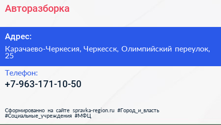 Авторазборка по адресу Карачаево-Черкесия, Черкесск, Олимпийский переулок, 25 в дальнейшем Организация, размещена в следующих категориях: