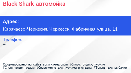 Black Shark, автомойка по адресу Карачаево-Черкесия, Черкесск, Фабричная улица, 11 в дальнейшем Организация, размещена в следующих категориях: