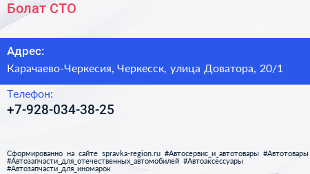 Болат, СТО по адресу Карачаево-Черкесия, Черкесск, улица Доватора, 20/1 в дальнейшем Организация, размещена в следующих категориях: