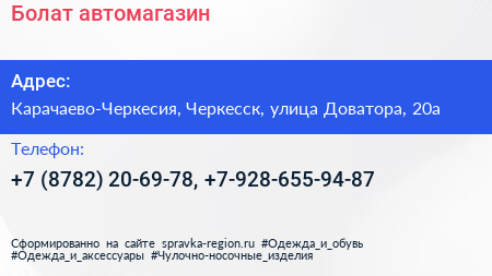 Болат, автомагазин по адресу Карачаево-Черкесия, Черкесск, улица Доватора, 20а в дальнейшем Организация, размещена в следующих категориях: