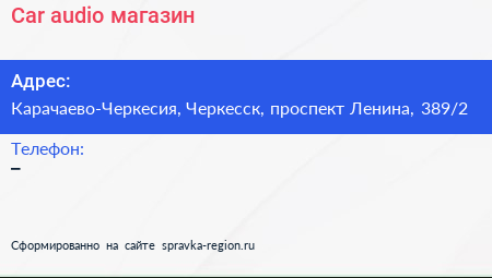 Car audio, магазин по адресу Карачаево-Черкесия, Черкесск, проспект Ленина, 389/2 в дальнейшем Организация, размещена в следующих категориях: