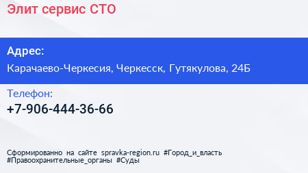 Элит-сервис, СТО по адресу Карачаево-Черкесия, Черкесск, Гутякулова, 24Б в дальнейшем Организация, размещена в следующих категориях: