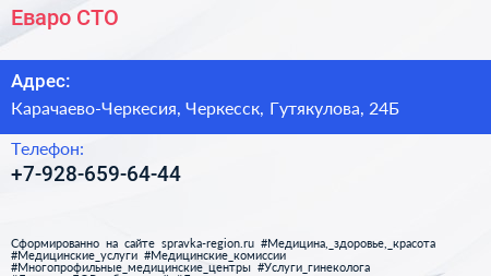 Еваро, СТО по адресу Карачаево-Черкесия, Черкесск, Гутякулова, 24Б в дальнейшем Организация, размещена в следующих категориях:
