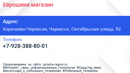 Еврошина, магазин по адресу Карачаево-Черкесия, Черкесск, Октябрьская улица, 92 в дальнейшем Организация, размещена в следующих категориях: