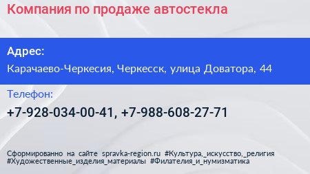 Компания по продаже автостекла по адресу Карачаево-Черкесия, Черкесск, улица Доватора, 44 в дальнейшем Организация, размещена в следующих категориях: